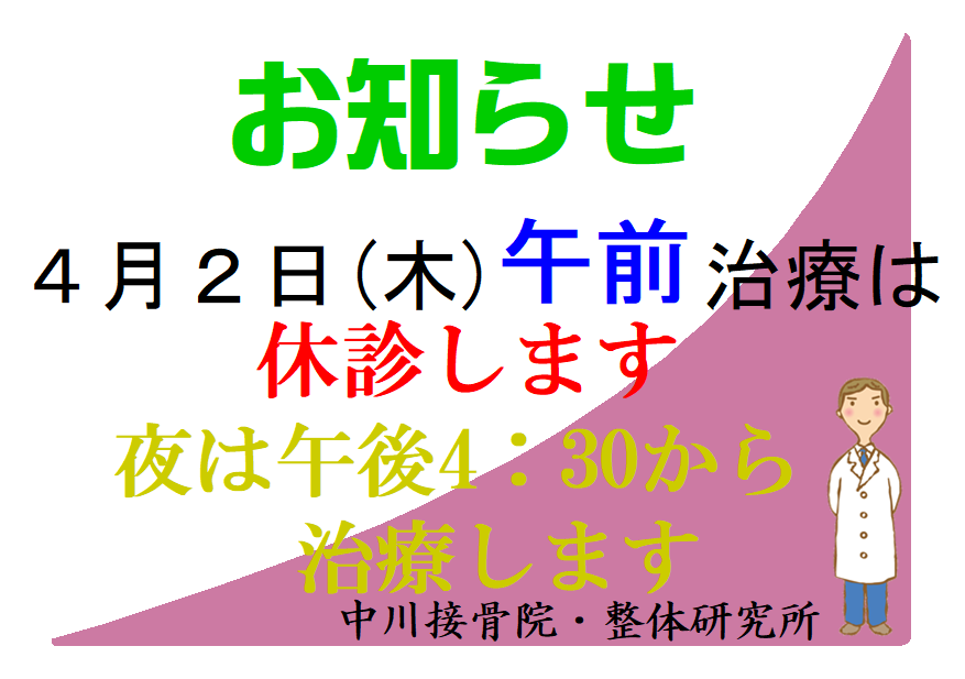中川接骨院・中川整体研究所はゴールデンウイークも施術する予定です(施術時間は未定)